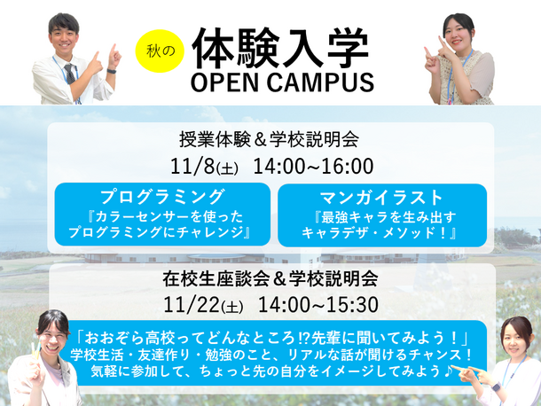 オープンキャンパス(体験入学/学校説明会)開催日程