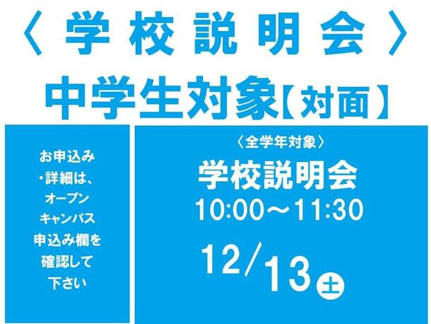 説明会2025-11-22 10:00〜12:00 【中学生3年】出願前説明会 「どんな学校生活が待っているんだろう?」「入試のことが気になる!」