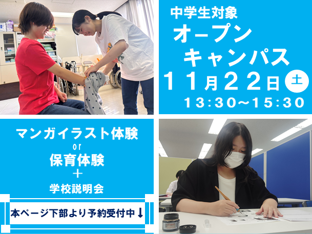 【中学2・3年生】【オープンキャンパス】マンガイラスト、保育体験で自分らしさや個性を見つけてみませんか?おおぞら高校 松山キャンパスの先生・先輩と一緒に楽しもう!!