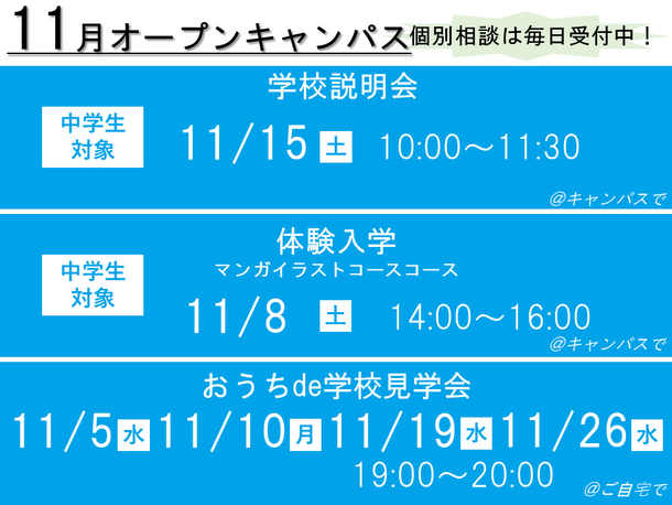 【中学生】マンガイラストコース体験会!【学校説明会+マンガイラストコース体験】