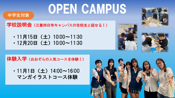 三重四日市キャンパスのオープンキャンパス(体験入学/学校説明会)