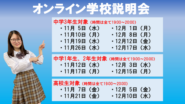 「高校受験直前!進路に迷う方へのラストガイド」夜のオンライン学校説明会