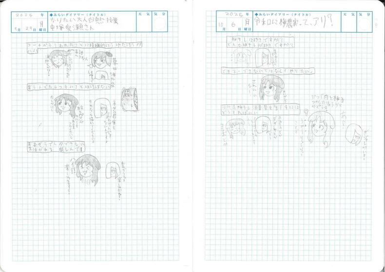 これからも高校生活での思い出がたくさん増え、みらいノートに描かれていき、Aさんだけのオリジナルのみらいノートができるのを楽しみにしています!