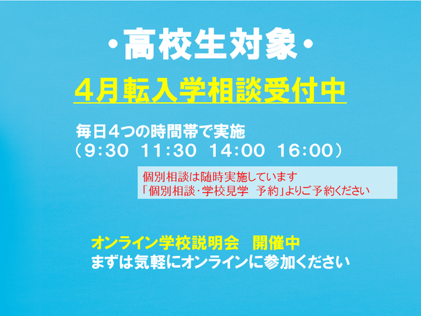 【高校生】【オンライン学校説明会】 「通信制高校へ転校したらどんな高校生活が待ってるんだろう?」 ~転校が気になっている高校生や保護者のための60分~