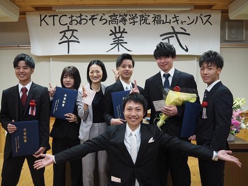 こんにちは、福山キャンパスです。3月23日、KTCおおぞら高等学院福山キャンパスの卒業式が行われました!入学から卒業するまでの在籍期間は、みんなバラバラですが、みんなそれぞれの「KTCストーリー」を持って卒業していきました。「高校生活、いろいろ悩んだけど卒業できてよかった!」「KTCで最高の友達に出会えた!」など、一人ひとりいろいろな想いで旅立っていきました。
