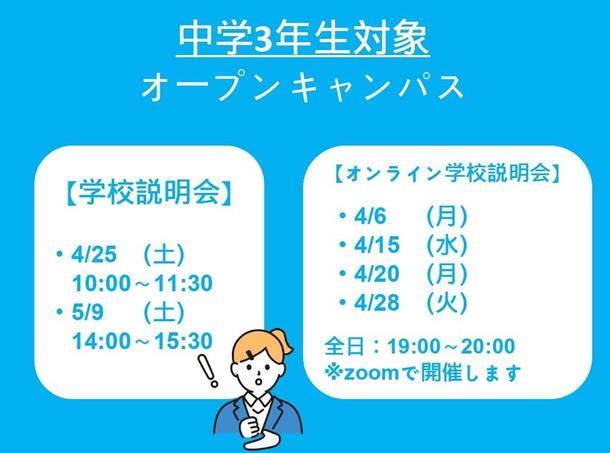 オープンキャンパス(体験入学/学校説明会)開催日程
