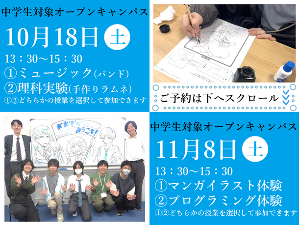 【中学生3年】【キャンパス開催】オープンキャンパスのご案内『マンガイラスト』or『プログラミング』