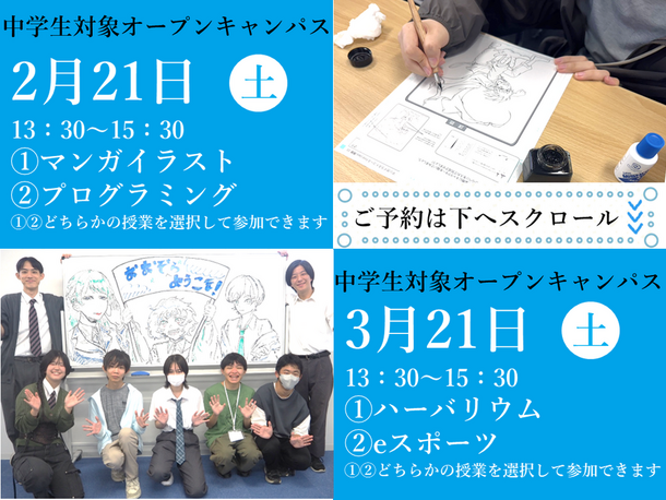 【中学生2年】【キャンパス開催】中学2年生対象オープンキャンパスのご案内『マンガイラスト』or『プログラミング』