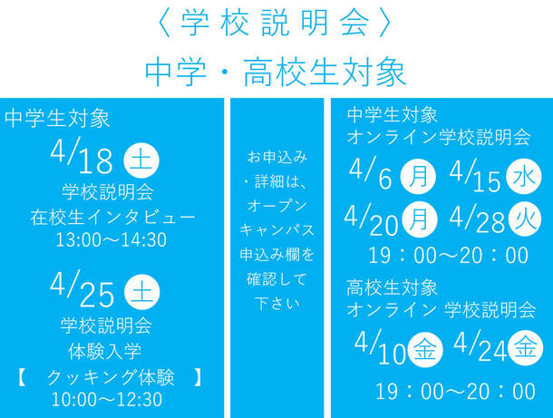 オープンキャンパス(体験入学/学校説明会)開催日程