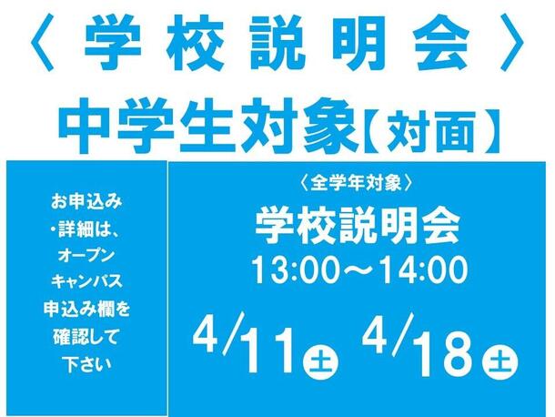 オープンキャンパス(体験入学/学校説明会)開催日程
