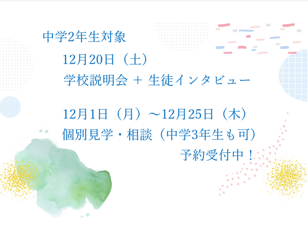 12月に入り、2学期も残りわずかとなりました。中学2年生のみなさんは「来年は受験生になるんだ」と少しずつ実感してきているのではないでしょうか?