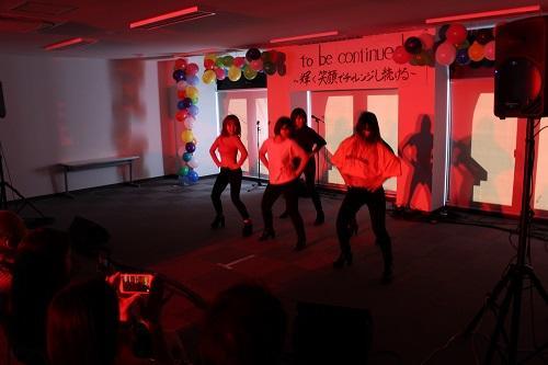 こちらはダンスの発表の様子です。この中にはコーチも混ざっています!! プロの講師がダンスを教えてくださるのですが、その中で生徒もコーチも一生懸命練習をしてきました。自分たちで練習の時間を決めてメリハリをつけてこの日に臨んでくれました。たくさんの声援が生徒たちを後押ししてくれていました。