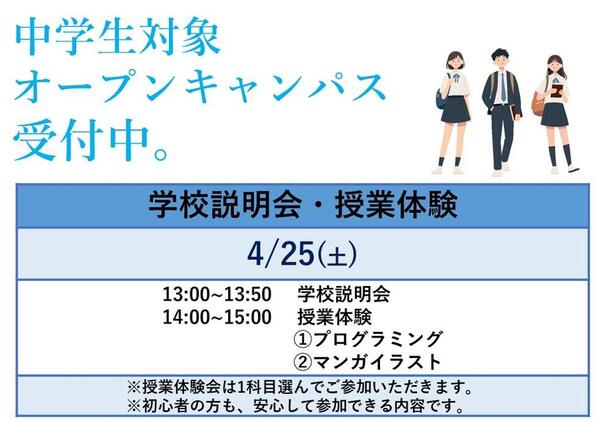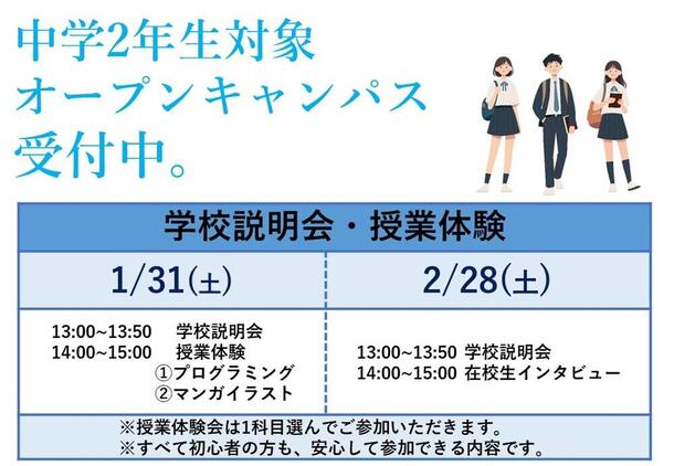 ※ 服装に指定はありません。中学校の制服でも私服でも自由な服装でお気軽にお越しください。