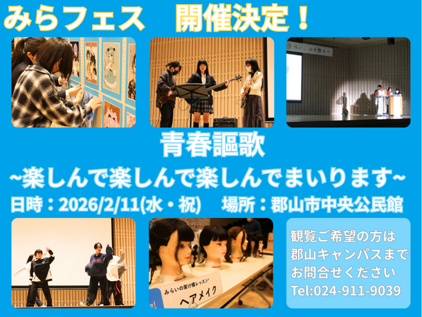 | アクセス | JR郡山駅西口より徒歩5分(入口は西側です。) 郡山キャンパスまでの道案内 |