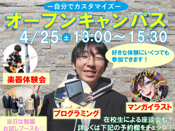 オープンキャンパス(体験入学/学校説明会)開催日程