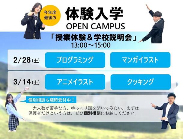 オープンキャンパス(体験入学/学校説明会)開催日程
