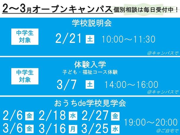 オープンキャンパス(体験入学/学校説明会)開催日程