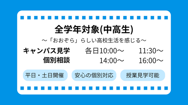 【中学1・2年生】進路研究に最適!春休みに知ろう!おおぞら高校!