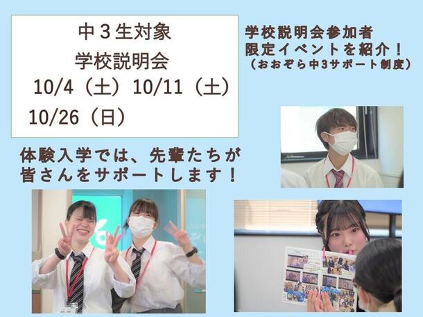【中学生3年】おおぞら高校のことがよくわかる 学校説明会(1、2年生も大歓迎!)