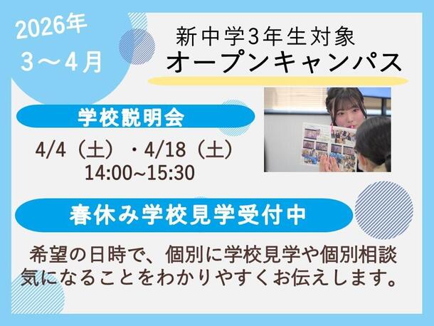 オープンキャンパス(体験入学/学校説明会)開催日程
