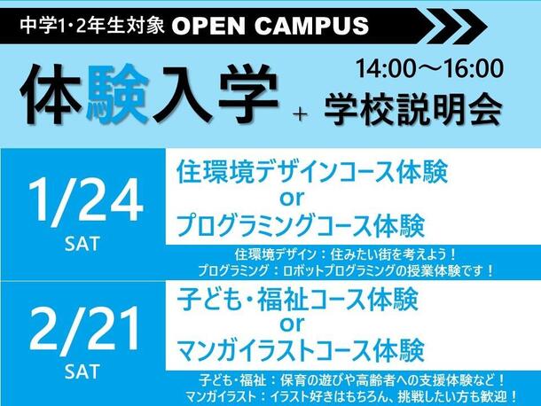 オープンキャンパス(体験入学/学校説明会)開催日程