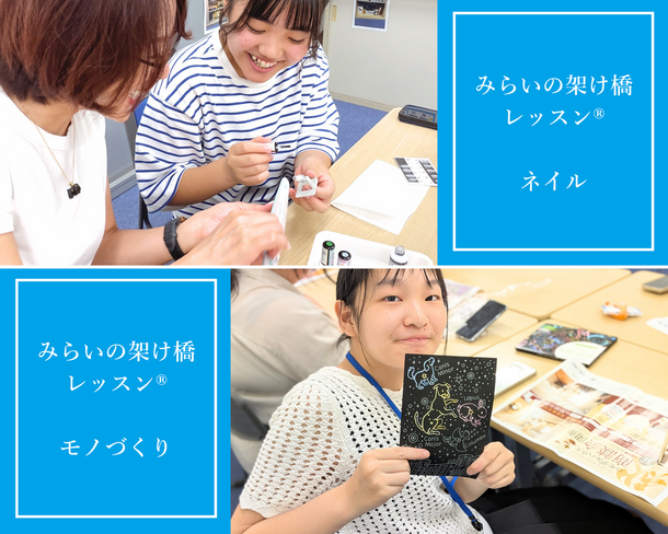 また、屋久島スクーリングでは屋久島の壮大な自然を感じたり他のキャンパスの人との交流をすることで他者を尊重することを学びました。みらいの架け橋レッスン®では、ネイルやフラワーアレンジメントで新たな自分が発見でき、たくさんの経験をすることで自分の幅を広げ、自分のなりたい大人を見つけることができました。