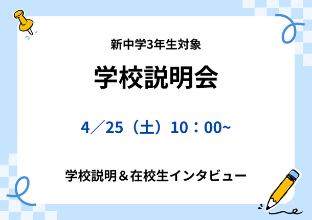 ※ 服装に指定はありません。中学校の制服でも私服でも自由な服装でお気軽にお越しください。