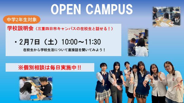実際に三重四日市キャンパスに通っている高校生が、中学生の皆さんに会いに来てくれます☆
