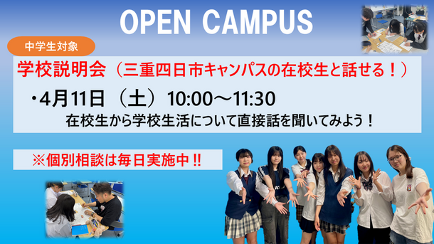 三重四日市キャンパスのオープンキャンパス(体験入学/学校説明会)
