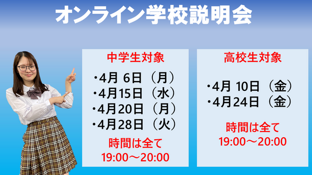 【中学生】【オンライン学校説明会】この春、一歩前へ。なりたい大人になるための『自分らしい』高校選びをスタートしよう