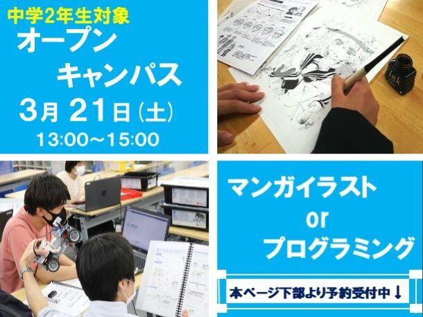 【中学1・2年生】中学2年生対象! オープンキャンパス【体験授業(マンガイラスト)と学校説明会】 ~今年は受験生になる皆さん、あなたは高校でどんなことを学びたいですか? 実際にリアルな体験をしながら、学校選びができる貴重な機会です~