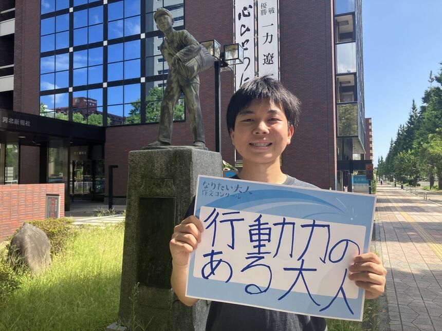 私のなりたい大人は行動力のある大人です。なぜ行動力のある大人になりたいとかというと、自分は受け身の人間だからです。自分は今まで、周りの人の目や空気を読む事を気にして、自分の意思じゃないからと、自分を守っていましたが、このままだと死ぬ時に後悔すると思ったので、周りの目や偏見を全て吹き飛ばし、堂々と我が道を歩ける強い立派な行動力のある大人になりたいと思います。