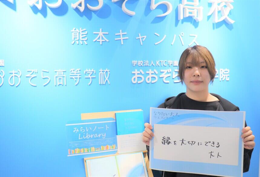 私がなりたい大人は、縁を大切にできる大人です。理由は人生が何事も縁で繋がっていると思うからです。人が困っている時に助けれる人は、自分が困っている時に誰かが手を差し伸べてくれると思います。人との縁などより人生を豊かにするために不可欠な物だと感じます。なので私は何事も縁を大切にし、誰かがくれたものを自分も返すことが出来る大人になりたいと思いました。