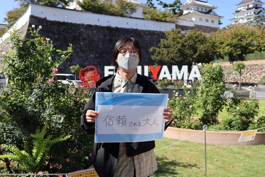私は信頼される大人になりたい。私の思う信頼とは、困ったときに相談できる人であり、話をしたくなる人であり、一緒にいて楽しい人だ。この信頼される人になる為には、演じる力が必要だと思っている。この力は、相手を不安にさせないため冷静沈着でいたり、活気を与えるため明るく振る舞ったりと、安心感を与えることができる力だ。周りを観ること、その場に適した行動を常に考えることで力をつけていきたい。