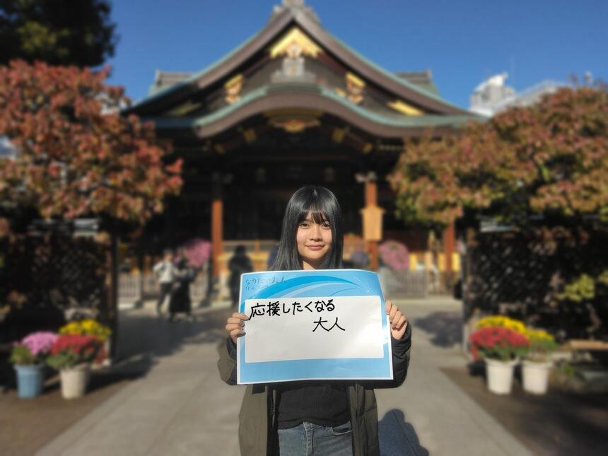 私は、利益や難しさを考えず、やりたいと思ったことに我武者羅に挑戦できる大人になりたいです。アイドルはステージに立つまでに多くの苦労があり、売れる保証もないのに口を揃えて幸せと言う姿がとても眩しく、私も元気をもらえます。我武者羅な人は本当にやりたいことをしているからこそ、その熱意が周囲に伝わり人を惹きつけるのだと思います。私もそんな応援したくなる大人になりたいです。