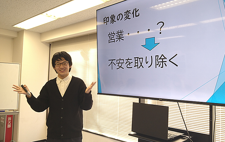 高校生までは自分に自信が持てなくて、人前に出て何かをすることができませんでした。しかし、カレッジに入学してからビジネスコミュニケーション講座で自ら積極的に発表できるようになりました。そこで、次の挑戦として、インターンワークで訪問営業のお仕事を学んでいます。業界研究をしたり、営業の基本トークを覚えるのが大変ですが、目標をもって頑張っています。