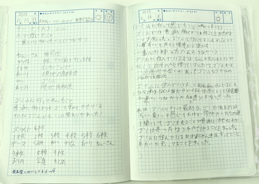 体験したことや感じてことをみらいノートにまとめることで自分の将来について考えるきっかけになっていることを実感しました!